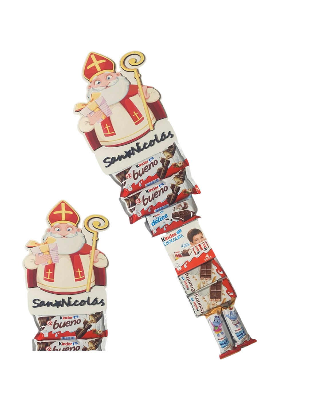 Pincho de madera San Nicolás relleno de productos KINDER.