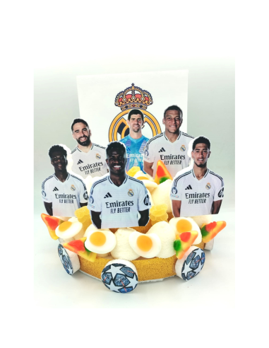 Increíble y deliciosa tarta de gominolas y nubes temática Real Madrid, con opción a elegir tus jugadores favoritos.